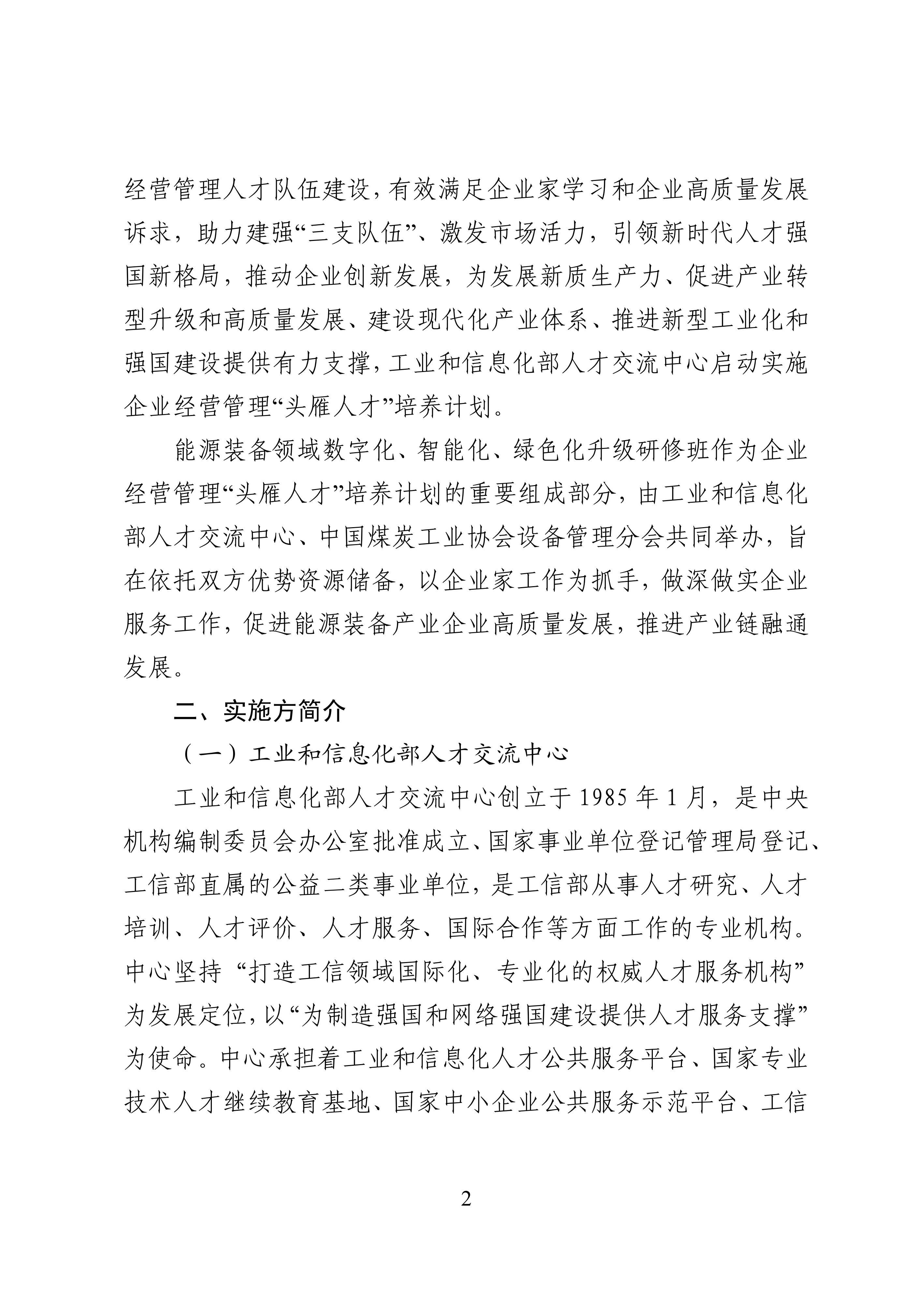 企业经营管理“头雁人才”培养计划能源装备领域数字化、智能化、绿色化升级研修班学员选拔培养方案