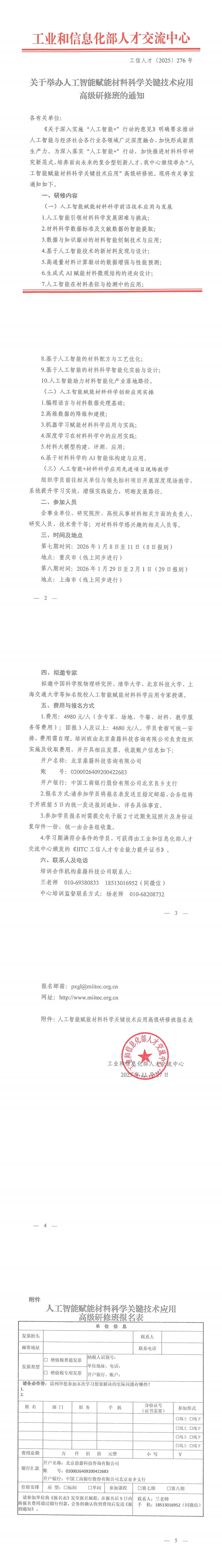 关于举办人工智能赋能材料科学关键技术应用高级研修班的通知(26年1月)