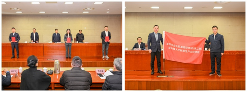 11月19日,企业经营管理“头雁人才”培养计划新质生产力研修班暨金华市企业家高级研修班一期结业暨二期开班仪式在金华市举行,中心副主任曾卫明、金华市人民政府副市长章旭升等出席活动。金华市经济和信息化局有关负责同志,金华市企业家高级研修班一期、二期全体学员参加。