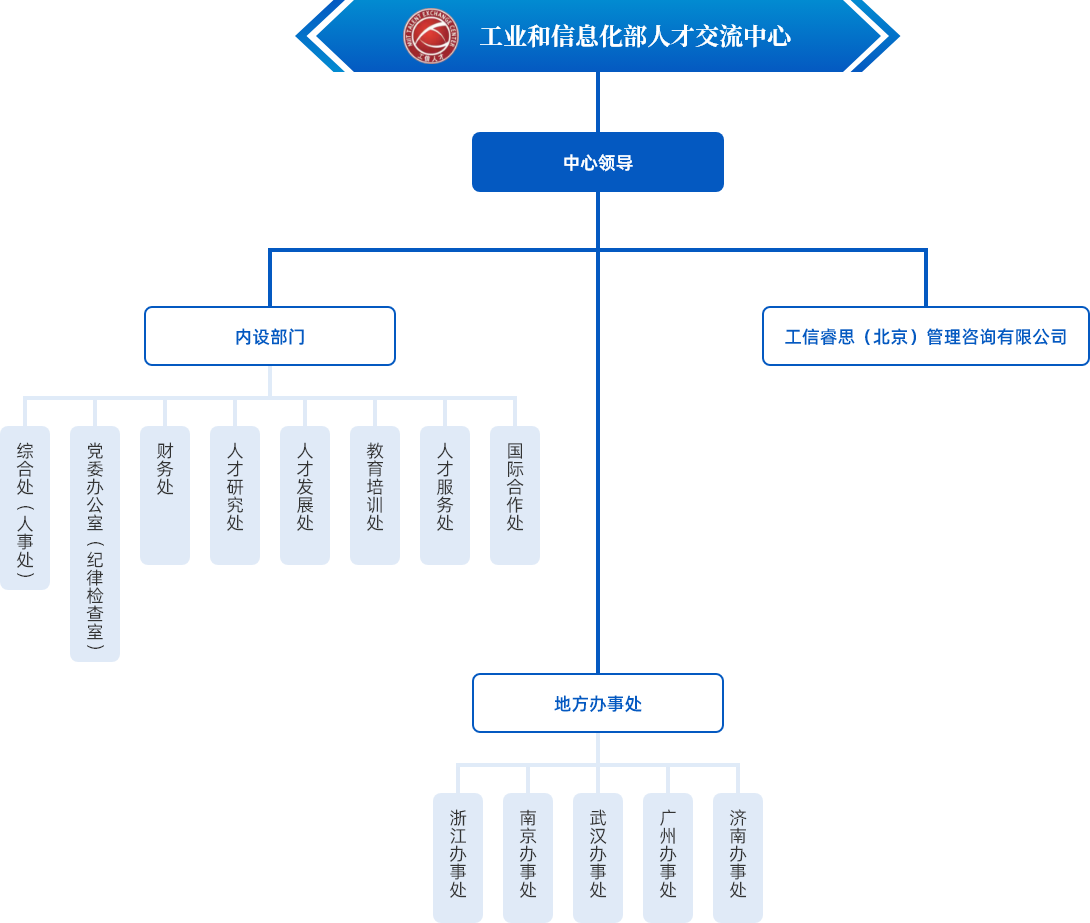 中心概况中心成立于1985年1月,公益二类事业单位,是部直属专业化人才支撑服务机构。中心以“对部支撑、服务行业”为宗旨,以“为推进新型工业化、建设制造强国和网络强国提供人才支撑”为使命。主要职能是承担对部人才相关政策研究、决策咨询、教育培训、引智服务、专项任务等支撑,以及人才评价、人才招聘、人事代理等行业服务工作。中心是部人才工作领导小组成员单位、部低空产业发展领导小组成员单位,承担部产业人才需求预测工作办公室等职能,负责建设工业和信息化人才公共服务平台、“人才大数据智能分析与评测”工业和信息化部重点实验室,获批国家级专业技术人员继续教育基地。