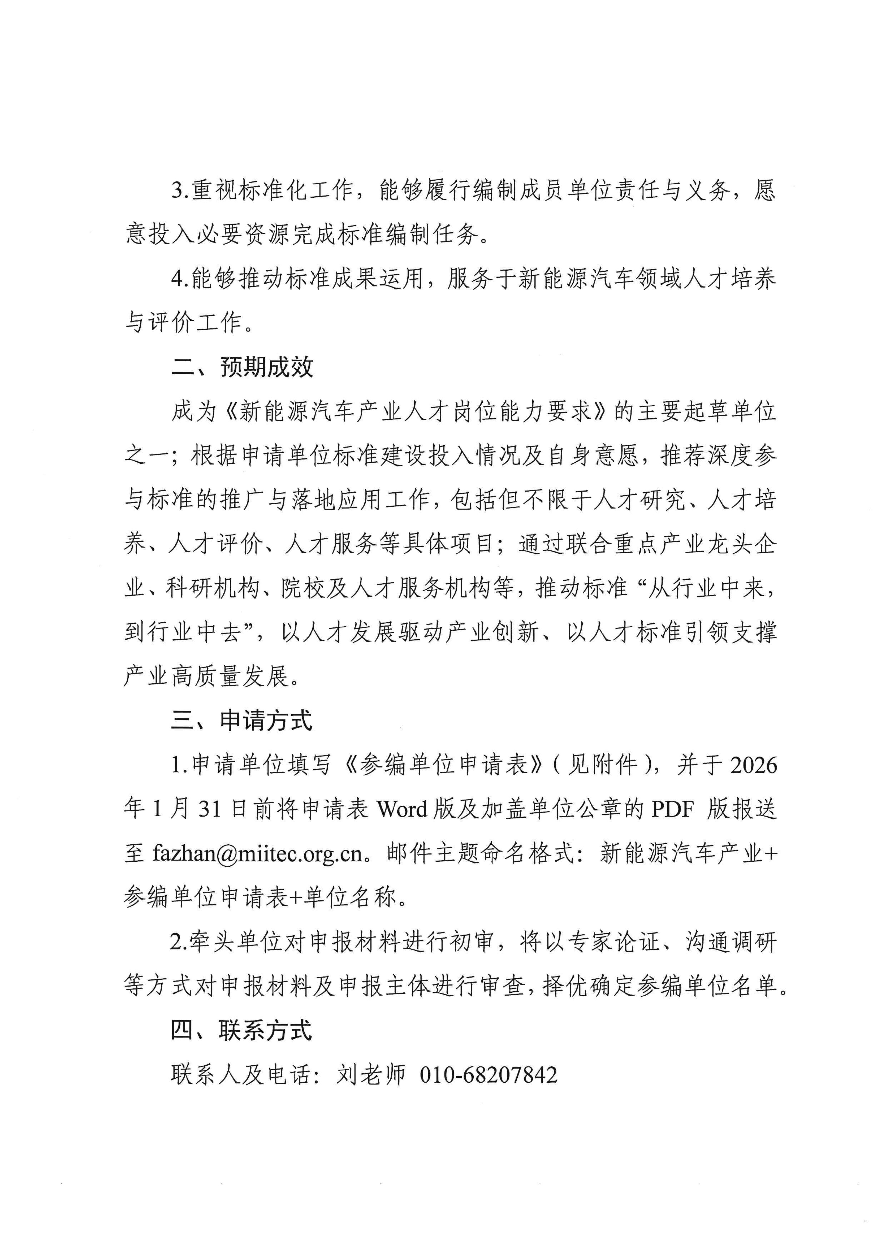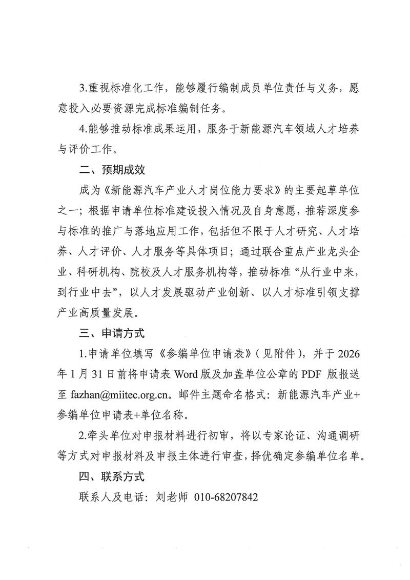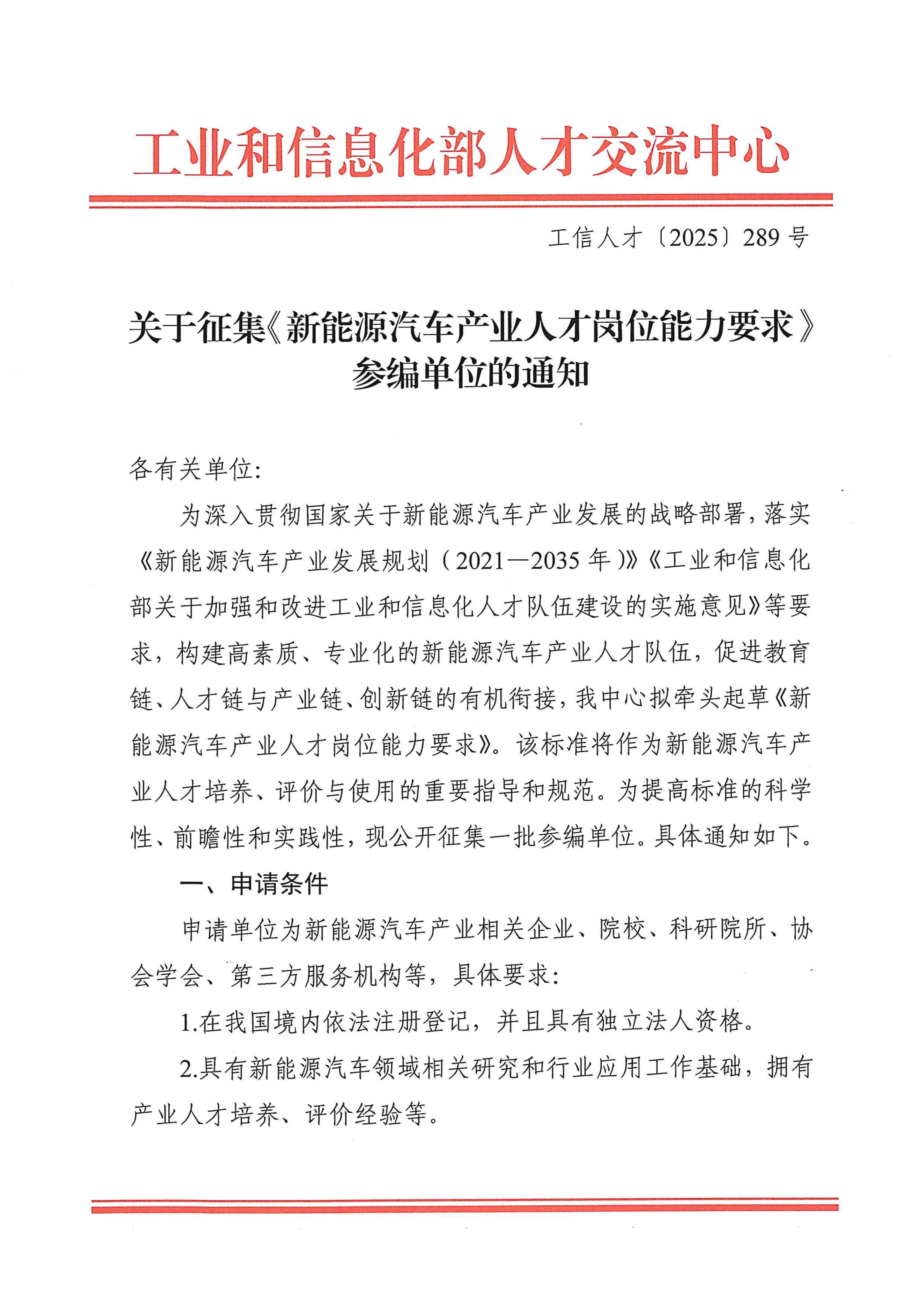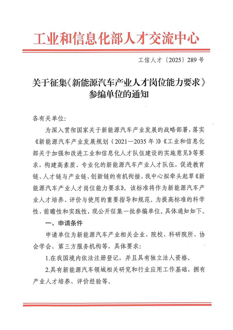 关于征集《新能源汽车产业人才岗位能力要求》参编单位的通知