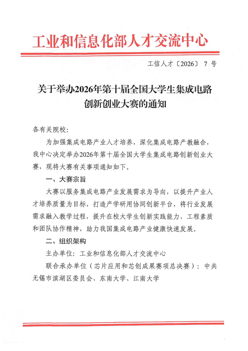 关于举办2026年第十届全国大学生集成电路创新创业大赛的通知