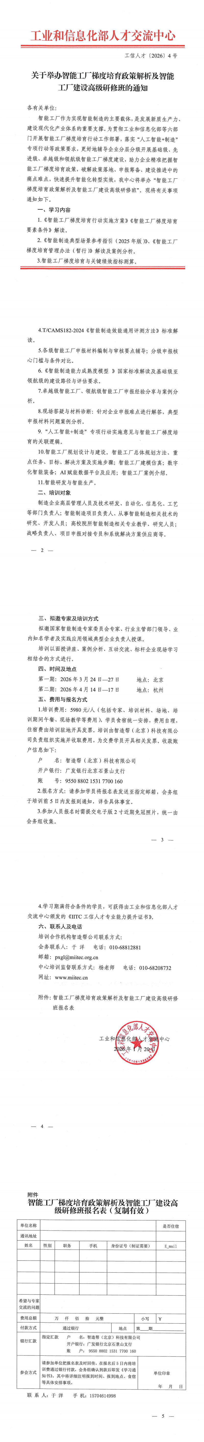 关于举办智能工厂梯度培育政策解析及智能工厂建设高级研修班的通知(26年3-4月)