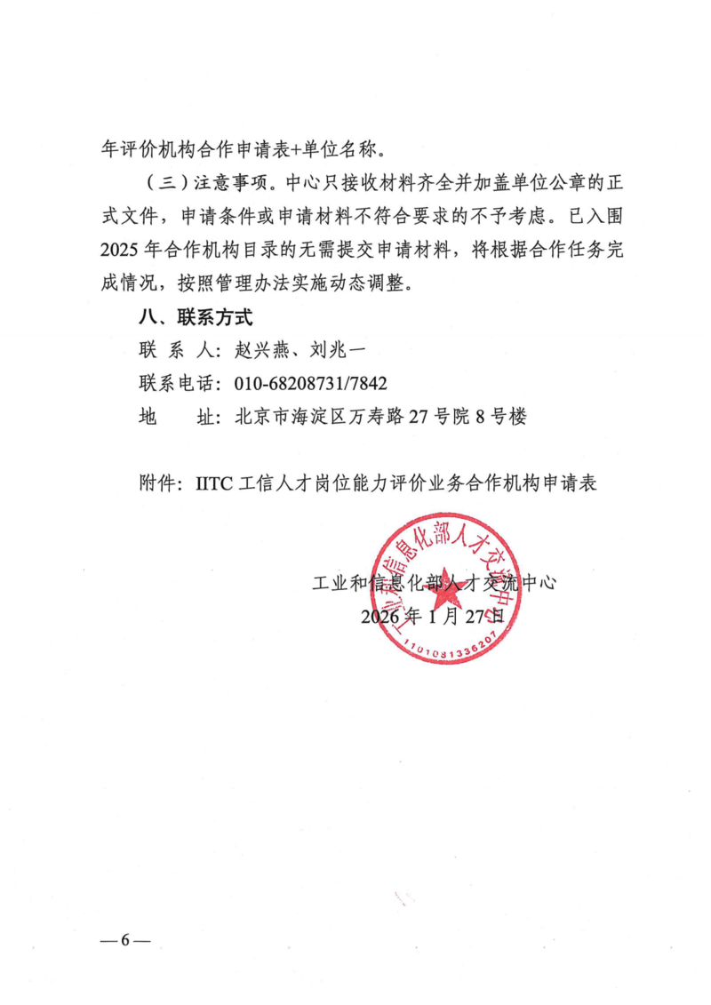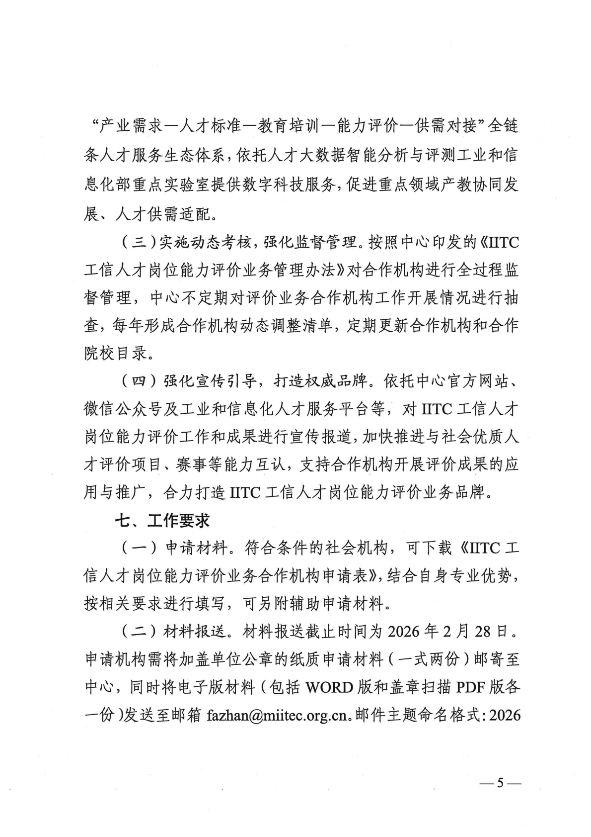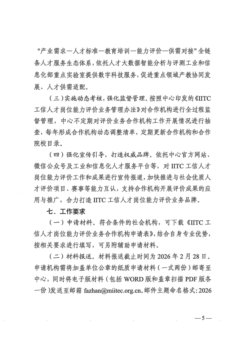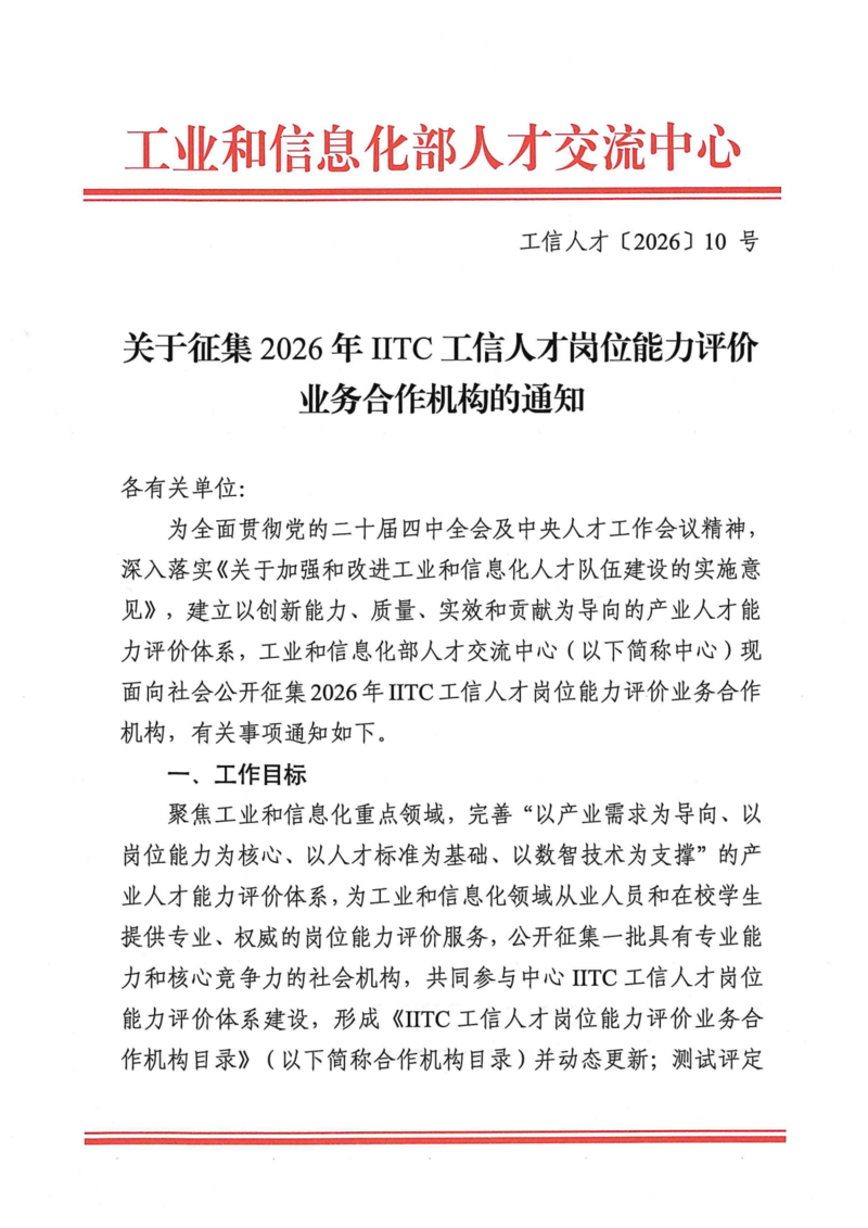 关于征集2026年IITC工信人才岗位能力评价业务合作机构的通知